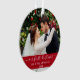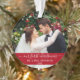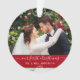 Elegant Stylish Trendy Script Our First Christmas Wedding Photo Red Ornament with Snowflakes back