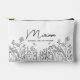 Stylish Floral Script Name Cosmetic / Accessory bag in black & white has a trendy boho, hand-drawn look. Neat & elegant, this design allows you to include a line of thoughtful (or practical) text on the reverse! This modern, minimalist floral is a sure favorite.