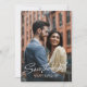 This stylish save the date features a retro inspired script "save the date" in white on a full vertical photo along with simple custom text. The back of this modern save the date has a chic black stripe along with a horizontal photo, room for a custom message and a QR code for your wedding website. This vertical design is great for a trendy and stylish couple, and it's a great way for the engaged couple to share wedding information with friends and family. Find more colors and styles in the collection by Lea Delaveris Design. Also available as a digital save the date download.