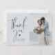 wedding thank you photo card with elegant black stylish script and a thank you message to your guests. The image can be personalized.