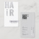 Stand out from the crowd with our elegant business cards. This unique design features a mesmerizing silvery bold typography and minimalistic design, perfect for hair salon, hair technicians and barber. Easily display your contact details, website, and social media handles, leaving a lasting impression on potential clients. Note: The holographic details are simulated in the artwork. There will be no actual holographic shine effects when printed.