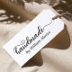 The lovely script design stamp saying " handmade" with personalized text details. Perfect handmade business stamp for your handmade items to label easily with this self inking rubber stamp..