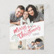 Stylish Slant Watercolor Merry Christmas 3-Photo Holiday Postcard