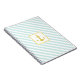Nautical notebook with light blue & white striped pattern and faux glitter golden anchor.