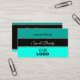 Make a lasting impression with this stylish business card design featuring light and dark teal colored stripes on black with pretty shimmery small gold decor.