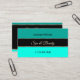 Make a lasting impression with this stylish business card design featuring light and dark teal colored stripes on black with pretty shimmery small gold decor.