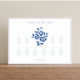 This ten table horizontal seating chart sets a welcoming, elegant and celebratory tone for arriving guests. Elegant and chic floral watercolor illustration with text in dusty blue against a white background. Personalize this seating chart to make it your own.