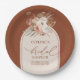 Add a touch of elegance to your celebration with these boho bridal shower paper plates, featuring watercolor terracotta florals, pampas grass, and a chic boho arch. The warm earthy tones of terracotta, copper, burnt orange, rust, dusty orange, and soft neutrals create a stylish and modern design that’s perfect for a trending boho chic bridal shower theme.