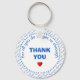 Stylish THANK YOU KEYCHAIN for health heroes, with curved text that says FOR ALL YOU DO TO GET US THROUGH, THANK YOU with a red heart. All text is CUSTOMIZABLE so you can personalize with other text or add an individual hero's name.