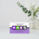 A simple design with two columns, one white one light purple. A black line demarcates these two layers. At the center lies a creative transportation placard motif i.e. freight by sea, land, air and rail. Right at the top you will find your prestigious name and job title. Southwards at the purple column lies a slogan option followed by the contact details.