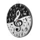 A stylish and eye-catching pattern of random musical notes in black and white with a large treble clef in the centre. The bottom of the design features black music notes on a white background with the top featuring white music notes on a black background. The large clef changes from black to white in color half way.