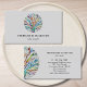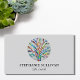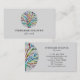 This life coach business card is decorated with a colorful mosaic tree of life design on a pale gray background.