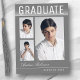 Trendy, modern and stylish graduation announcement cards, featuring design elements of modern text with handwriting signature script. Three graduate photos highlight the front of the card with "Graduate" accented in a sleek white gradient. The back of the card offers personalized text spaces for information about your graduation and future journey. White writing on silver gray or easily customize the background to match your school's primary color or any color of your choice. Perfect for the high school, college and university grad.