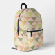 This backpack is more than just a practical item for carrying school supplies; it's a fashion statement. The combination of geometric triangles in peach and light pink, along with the option for monogramming, makes it a stylish and unique choice for any young student.