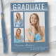 Stylish Trendy Modern 3 Photo Blue Graduation Postcard