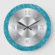 Stylish Turquoise Blue Glitter Silver Numbers Large Clock