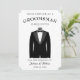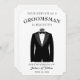 Will you be my groomsman card featuring a classy Tuxedo. Add your custom wording to this design by using the "Edit this design template" boxes on the right hand side of the item, or click the blue "Customize it" button to arrange the text