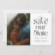 Elegant and stylish save the date card featuring a typography text that says "save our date" with your photo. You can add a QR code on the back that links to your wedding website.