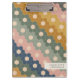 This stylish personalized clipboard features a boho geometric pattern of vintage hexagon shapes in a modern color palette of navy blue, forest green, blush pink, and mustard yellow. Great gift idea.