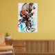 The myriad of colors used in the hair—ranging from warm reds and yellows to cool blues and greens—makes this piece a versatile match for various interior color schemes. It could serve as an inspirational piece in a creative workspace or add a touch of whimsy to a contemporary home setting.