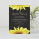 Stylish Watercolor Sunflower Black Wedding Shower Invitation