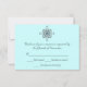 Elegant wedding response card, in light teal with a silver tone decorative embellishments at the top. Customize the text to suit your needs.