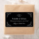 Custom black and white wedding wine or spring water bottle labels. Personalized elegant waterbottle sticker template with interlocking hearts and stylish border with swirly swirls. Fancy script typography for names of bride and groom and thank you message. Use as classy table decoration or thank you favor for guests at the party. Includes name or monogram plus date of marriage. Romantic vintage design with beautiful corners. Also good for retro theme weddings. Create your own natural mineral waterbottle labels with this classy DIY template. Customizable background color.