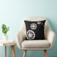Funky And Stylish White Floating Wheel / Circle Minimalistic Abstract Art Throw Pillow / Cushion to add to your home / office / business decor collection. A cool present / gift idea for all who love custom design unique items, positive vibes, geometry, busy prints, movement, life, minimalism, deeper meaning etc. Change the background color to suit your style and taste. Each side is different.