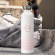 Stylish White Pink Modern Golf Ball Monogram Water Bottle