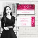 Make a lasting impression with this eye catching and stylish business card design featuring shimmery pink glitter with bright stars and on the reverse side there is a white background with a glitter border.