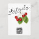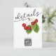 This chic double-sided enclosure card features a rustic design with vintage red cherries and green leaves on the front, set against a clean white background. The front also showcases sophisticated black calligraphy reading "Details." and a modern QR Code that allows guests to easily access your wedding website. On the reverse, the details are written in simple classical white script on a romantic red background. All text, including the scannable QR code, is fully customizable—replace it with your own or remove unnecessary information. Explore our Cherry Wedding collection for coordinating products that create a cohesive and stylish look for your event. Perfect for a personalized and memorable wedding experience!