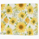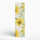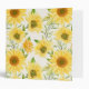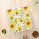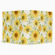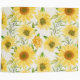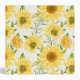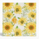 Illustration style graphic of yellow sunflowers with leaves and stems on white background, seamless repeat pattern