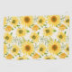 Illustration style graphic of yellow sunflowers with leaves and stems on white background, seamless repeat pattern
