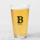 Pint glass for that refreshing, cold brew that features a person's initial and last name in black, stylized lettering. Personalize your glass by editing and replacing initial and last name with your own as desired. You may customize further to edit font styles and size. Always a trendy gift for a birthday or Father's Day.