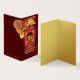 Design of stylized Chinese palanquin carrying a golden paper-cut of an Ox with its ideogram + Chinese greeting + large 2021 + Chinese red frame + golden auspicious clouds. Design on vertical folded cards with dark red background + golden textured paper (image printed) inside. You can easily change background color and the position all the different elements of the design by clicking the customize button. Matching greeting card, holidays postcard, invitations, craft products, party supplies and more... Perfect for Chinese New Year of the Ox 2021.