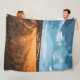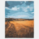 Wrap yourself in the warmth of a summer day with this soft and inviting fleece blanket. Decorated with a striking, stylized illustration of a countryside road cutting through bright golden fields beneath a cloudy blue sky. This beautiful piece offers both comfort and a stunning visual aesthetic for your living room or bedroom.