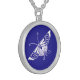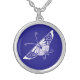 Stylized Deco butterfly - cobalt blue Silver Plated Necklace