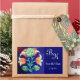 STYLIZED FLOWER,PINK GREEN BLUE FLORAL MONOGRAM RECTANGULAR STICKER