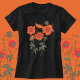 Graphic orange and green floral decorative poppies ladies t-shirt. Based on the ragged edged poppy. Uniquely designed by Sarah Trett.