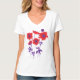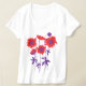 Graphic purple and red floral decorative poppies ladies t-shirt. Based on the ragged edged poppy. Uniquely designed by Sarah Trett.