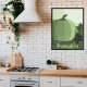 The stylized green pumpkin kitchen poster shows a monochrome color palette. A digital artwork that is perfect for a modern autumn wall hanging for the modern kitchen. How to customize the template? Customize the caption and fill color to match your language and kitchen decor color. Mid-range tones work best and return the chosen color lightened up with white or darkened down with black. Personalize the caption font to complement the kitchen style and adjust the font-size and font color. For help or custom designs please contact https://t.me/KBMD3signs_chat.