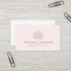 Pink or any color business cards or personal profile cards with an elegant stylized lotus flower and your name and title/business name on the front. Customizable contact information on the back.