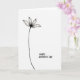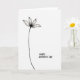 This card features a single stylized flower tucked into the upper left of a wide white background, leaving lots of open space that feels calm and intimate. The bloom has five gently tapered petals outlined in black, with soft gray shading that makes them look lightly translucent, like they’re opening toward someone you care about ❤️. A dark, detailed center anchors the flower, and from it a long, slender stem curves downward in a graceful line that suggests a quiet, affectionate reach. The limited black, white, and gray palette keeps the focus on the tender shapes and the gentle flow of the composition. In the lower right corner, a short message appears in a casual hand-lettered look, set in dark ink so it stands out without taking over. The placement of the text balances the flower across the page, like two friends sharing a small moment across a room 🌼. The petals sit in the upper left quadrant, while the message rests low on the right with generous white space between them.