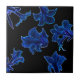 Stylized Neon Blue Flowers Floral Ceramic Tile