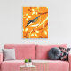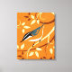 Nuthatch bird art with stylized branches on am orange background with decorative leaves