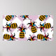 Stylized pineapple. Hat and rhombus Harlequin. Sea Poster
