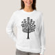 A hand drawn original tree motif in a pen an ink style with clumps of leaves dispersed along the branches.