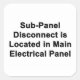 Sub-Panel Disconnect Located in Main Panel sticker