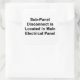 A sticker label with the words "Sub-Panel Disconnect is Located in Main Electrical Panel" printed in black letters on a white background on a sheet of SIX STICKERS