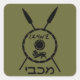 A black military "subdued" style depiction of a Maccabee's shield and two spears. The shield is adorned by a lion and text reading "Yisrael" (Israel) in the Paleo-Hebrew alphabet. Hebrew text reading "Maccabee" also appears. The Maccabees were Jewish rebels who freed Judea from the yoke of the Seleucid Empire. Chanukkah is not just a mid-winter festival featuring candles and fried delicacies, it celebrates a military victory, and securing religious freedom, over the Seleucid Empire. Additionally, the revolt was a civil war involving those Jews who were loyal to G-d and those who had adopted the Hellenism of the Seleucids.